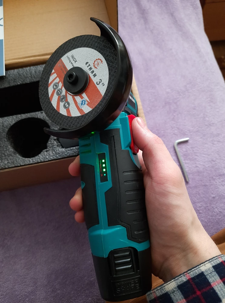 Отличная болгарка, покупал месяца 2 назад, аккумулятора хватает достаточно надолго. Ставил диск по дереву давал отцу подрезать ветки деревьев, справляется отлично. Цена, качество огонь